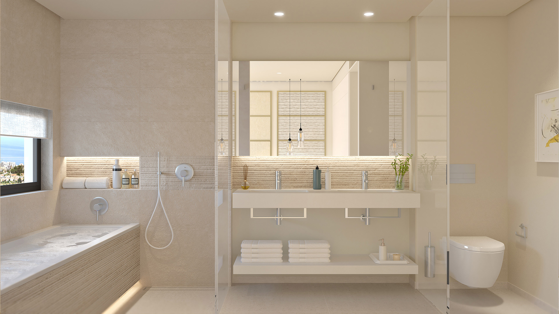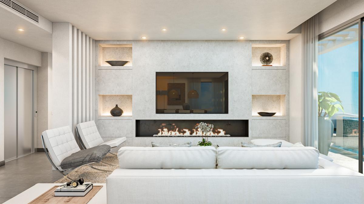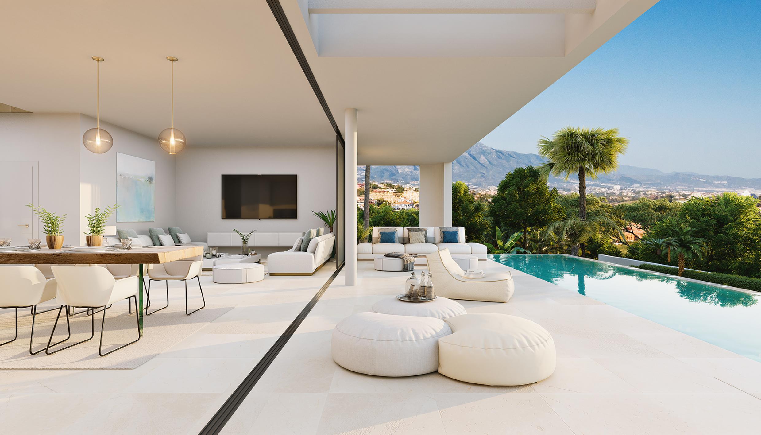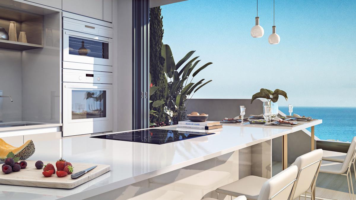 Avaamalla lattiasta kattoon ulottuvat liukuovet, huoneistojen oleskelutilat tuplaantuvat kun olohuone, ruokailutilat ja keittiö sulautuvat toisiinsa ulottuen sisätiloista terassille. Suuret oleskelutilat tekevät huoneistoista avaria, ja niiden suunnittelussa on on pidetty mielessä Aurinkorannikon ilmaston ja elämäntyylin tuomat edut.